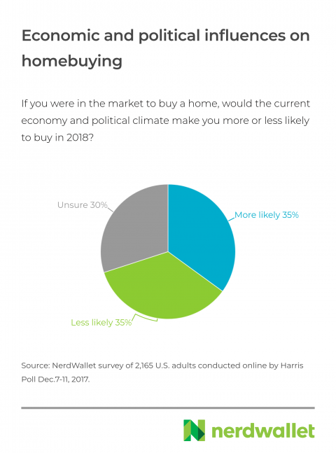 Despite strong opinions voiced in 2017 in the media, and likely across dinner tables, about the current economy and political climate, Americans are evenly split on how these factors would influence a 2018 home purchase. When asked whether the current economic and political climate would make them more or less likely to buy a home this year, 35% said more likely, 35% said less likely and 30% said they were unsure.