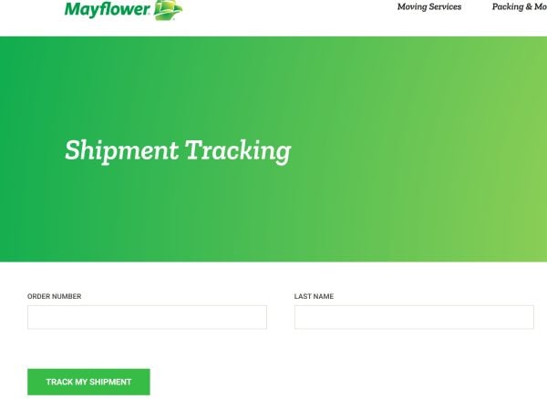 Mayflower lets you track your truck when you enter an order number and your last name. However, you can’t find the exact location of your shipment; you have to talk to the move coordinator to get that information.