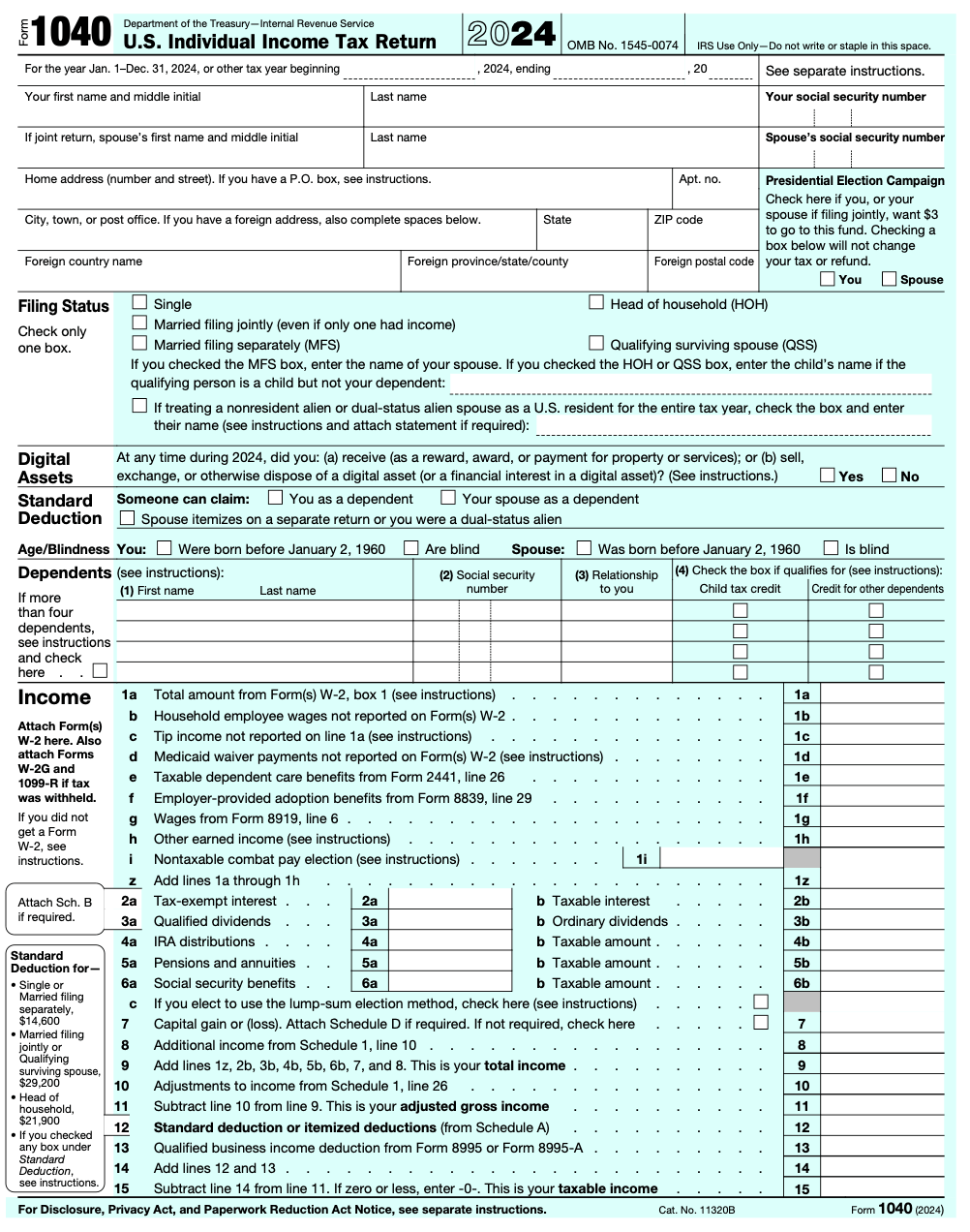 If you prefer to fill out your return yourself, you can download Form 1040 from the IRS website